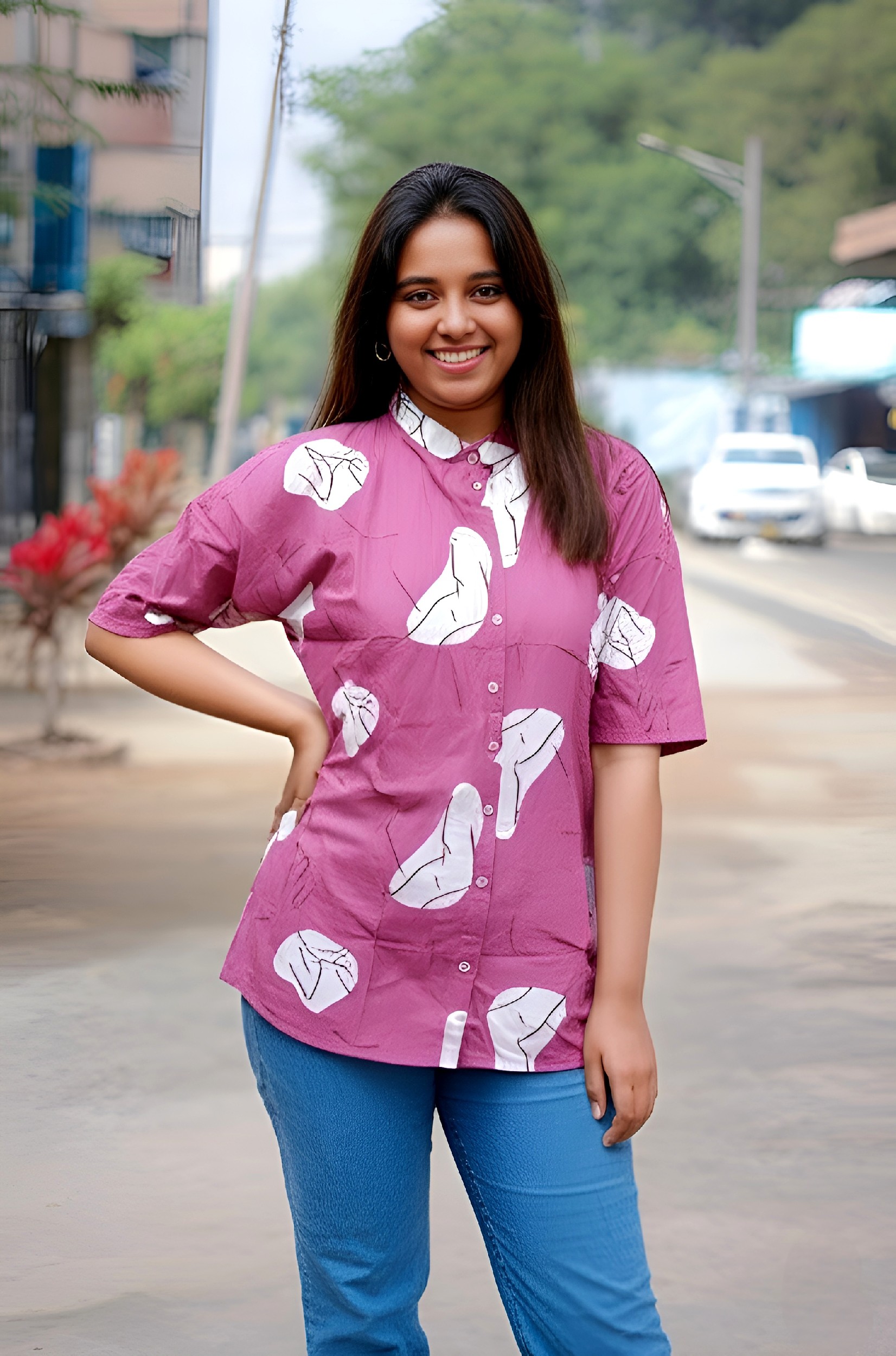 Step into effortless style with this vibrant pink cotton tunic, designed for the modern woman who loves comfort with a touch of art. Featuring a relaxed fit, short sleeves, and a mandarin collar, this long shirt showcases a unique abstract face line art print that adds a bold, contemporary flair to your casual wardrobe. Crafted from breathable, lightweight fabric, it's perfect for everyday wear, whether you're heading to college, meeting friends, or enjoying a relaxed day out. Pair it with your favorite jeans or leggings for a complete look that’s stylish yet easygoing.